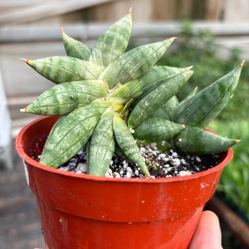 Botanical Name: Sansevieria Common Names: Snake plant Description: The Lavranos Snake Plant is a delightful miniature version of the belove...